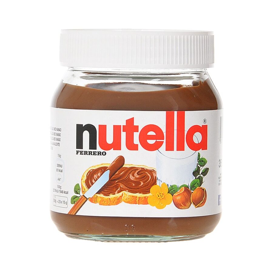 Nutella, in its convenient 350-gram jar, is a delightful and irresistible hazelnut spread that has captured the hearts of countless individuals around the world. This delectable treat is a harmonious blend of rich, creamy chocolate and roasted hazelnuts, meticulously crafted to create a smooth and velvety consistency that spreads effortlessly on your favorite snacks.